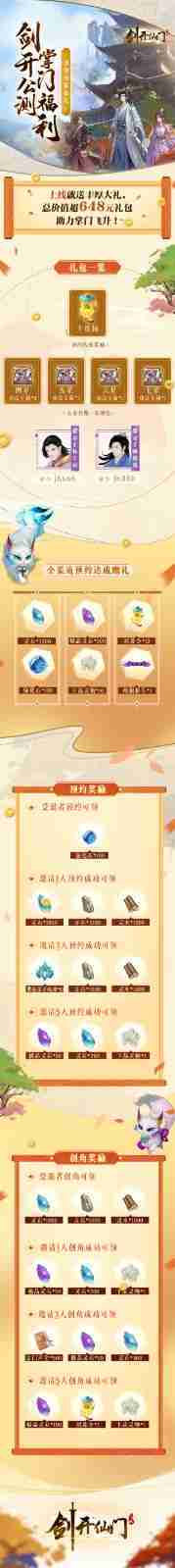游戏为大家准备了海量的福利,,,,包括上线即可获得的全渠道预约礼包、、、十连抽等福利,,,输入密令“JK666”、、“JK888”即可领取紫色弟子,,,,达到金丹期后还有功法宝箱可领,,,助力全宗上下实力提升……所有奖励总价值超过648元,,,而邀请好友一起体验,,,更可以获得额外的奖励哦~